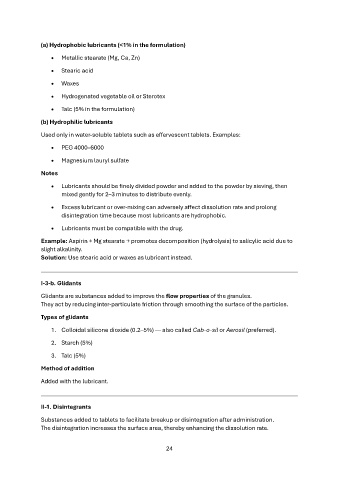(a) Hydrophobic lubricants (<1% in the formulation)