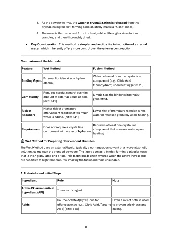 crystalline ingredient, forming a moist, sticky mass (a "fused" mass).