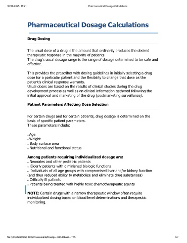 30/10/2025, 18:21 Pharmaceutical Dosage Calculations