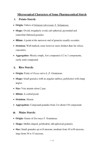 Microscopical Characters of Some Pharmaceutical Starch