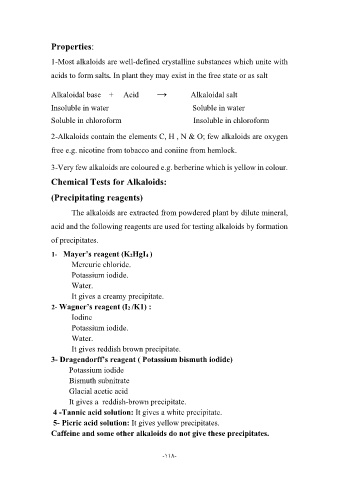 Chemical Tests for Alkaloids: