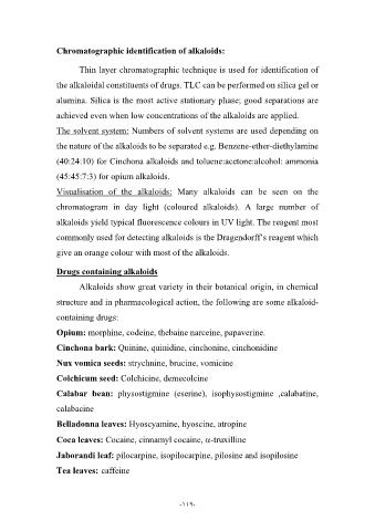 the alkaloidal constituents of drugs. TLC can be performed on silica gel or