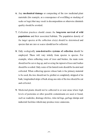 6. Any mechanical damage or compacting of the raw medicinal plant