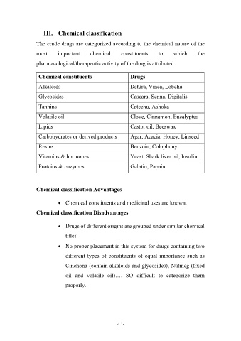 The crude drugs are categorized according to the chemical nature of the