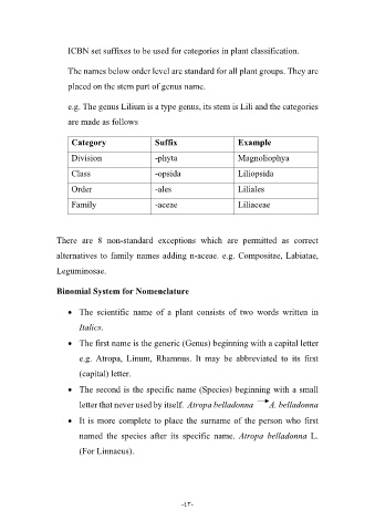 e.g. The genus Lilium is a type genus, its stem is Lili and the categories