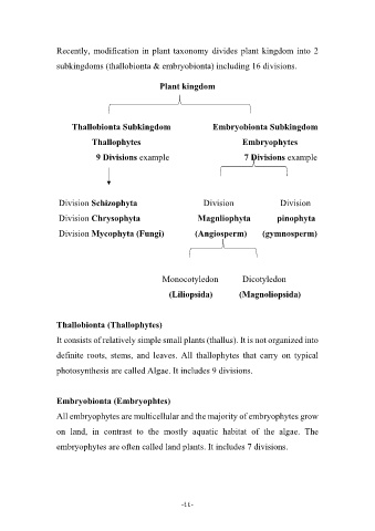 subkingdoms (thallobionta & embryobionta) including 16 divisions.
