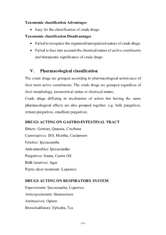 The crude drugs are grouped according to pharmacological action/uses of