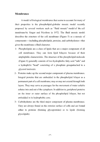 describes the structure of the cell membrane (Figure 5) as a mosaic of