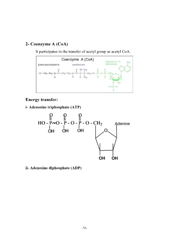 2- Coenzyme A (CoA) It participates in the transfer of acetyl group as acetyl CoA. Energy transfer: i- Adenosine triphosphate (ATP) ii- Adenosine diphosphate (ADP) -٦٨-