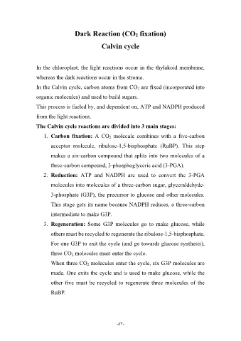 Dark Reaction (CO2 fixation)