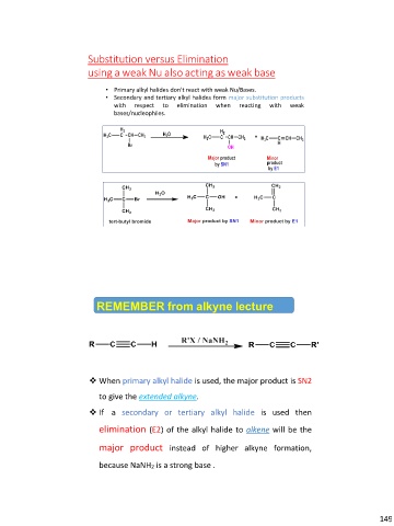 • Primary alkyl halides don’t react with weak Nu/Bases.