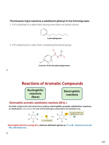 Electrophile (Electron loving) (E+): electron-deficient species as: Cl+ or Br+ (halonium ion) and
