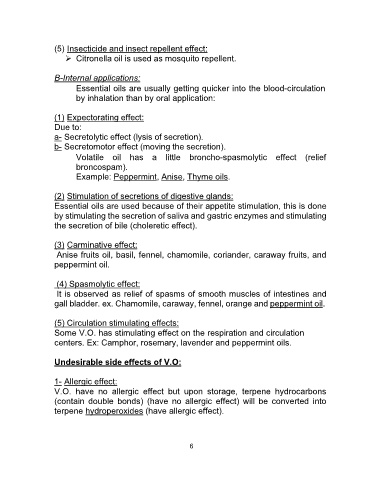 V.O. have no allergic effect but upon storage, terpene hydrocarbons