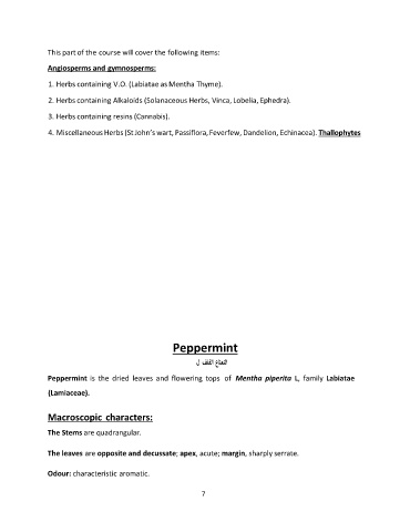 Peppermint is the dried leaves and flowering tops of Mentha piperita L, family Labiatae
