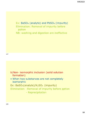 Ex: BaSO4(analyte)/K2SO4 (impurity)