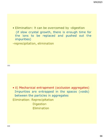 Elimination: Reprecipitation