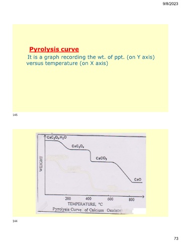 9/8/2023 Pyrolysis curve It is a graph recording the wt. of ppt. (on Y axis) versus temperature (on X axis) 145 144 73
