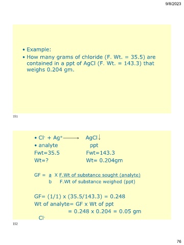 • How many grams of chloride (F. Wt. = 35.5) are