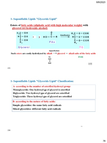 1- Saponifiable Lipids "Glyceride Lipid“ Classification: