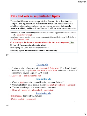 • Contain mainly glycerides of unsaturated fatty acids (E.g. Linoleic acid,