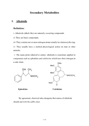 compounds such as ephedrine and colchicine which have their nitrogen in