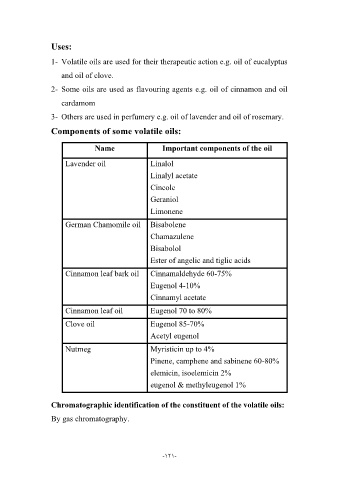 1- Volatile oils are used for their therapeutic action e.g. oil of eucalyptus