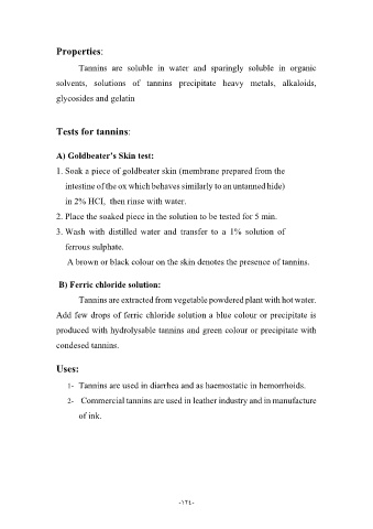 1- Tannins are used in diarrhea and as haemostatic in hemorrhoids.