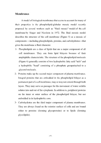 describes the structure of the cell membrane (Figure 5) as a mosaic of