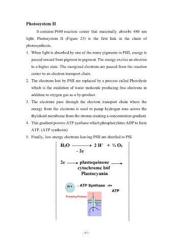 light. Photosystem II (Figure 23) is the first link in the chain of