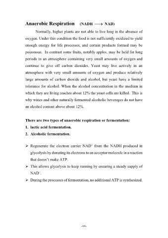 Anaerobic Respiration (NADH ⎯→ NAD)