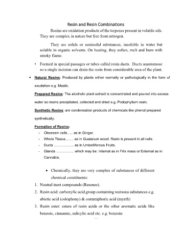 Natural Resins: Produced by plants either normally or pathologically in the form of
