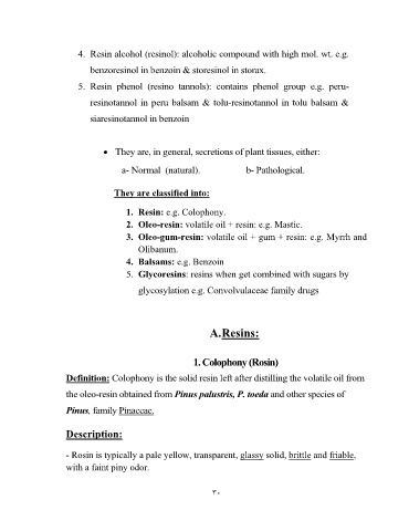 4. Resin alcohol (resinol): alcoholic compound with high mol. wt. e.g.