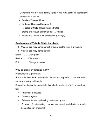 - Depending on the plant family volatile oils may occur in specialized