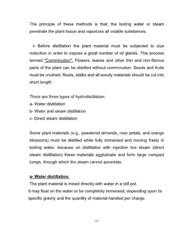 parts of the plant can be distilled without comminution. Seeds and fruits
