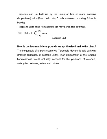 - Isoprene units arise from acetate via mevalonic acid pathway.