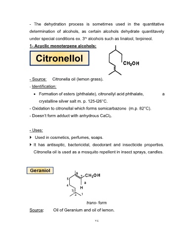 - Oxidation to citronellal which forms semicarbazone (m.p. 82°C).