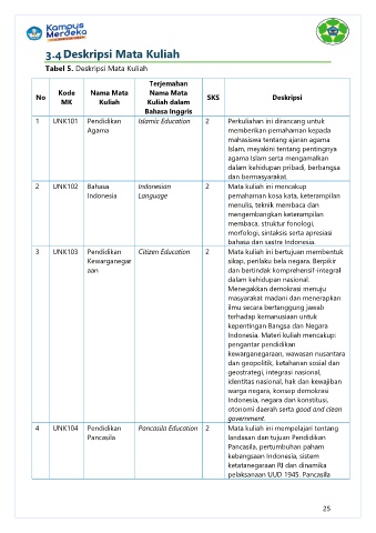 4 UNK104 Pendidikan Pancasila Education 2 Mata kuliah ini mempelajari tentang