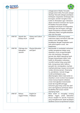 6 UNK106 Olahraga dan Physical Education 2 Mata kuliah ini membekali mahasiswa