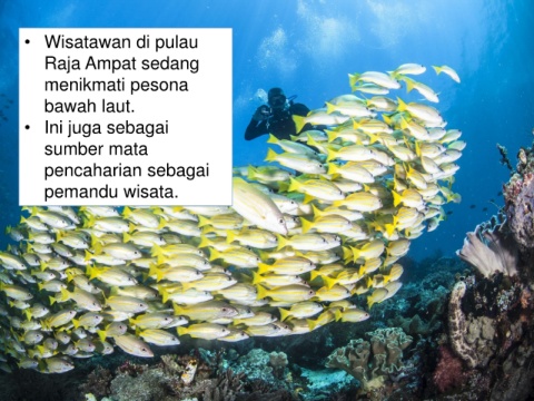 • Wisatawan di pulau Raja Ampat sedang menikmati pesona bawah laut. • Ini juga sebagai sumber mata pencaharian sebagai pemandu wisata.