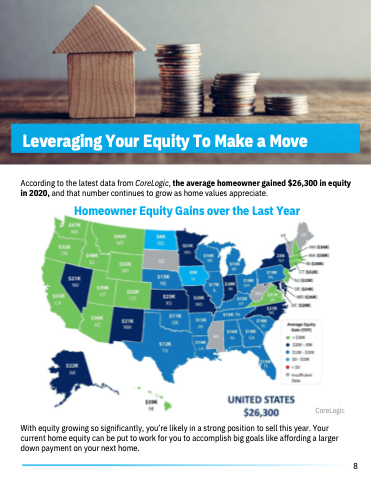 According to the latest data from CoreLogic, the average homeowner gained $26,300 in equity in 2020, and that number continues to grow as home values appreciate.