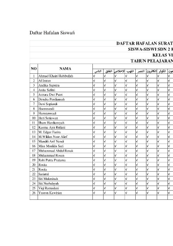DAFTAR HAFALAN SURAT-SURAT PENDEK
