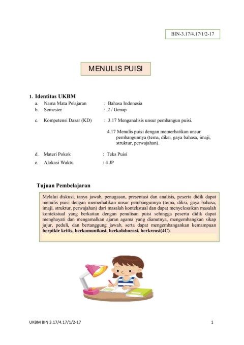 c. Kompetensi Dasar (KD) : 3.17 Menganalisis unsur pembangun puisi.
