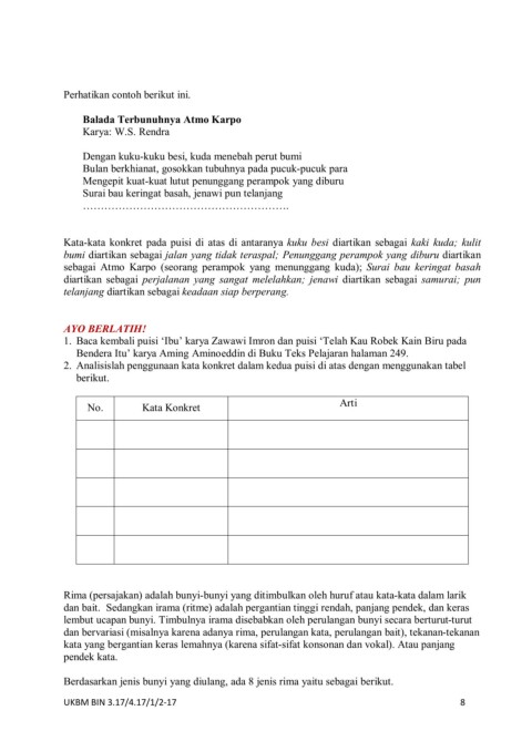 1. Baca kembali puisi ‘Ibu’ karya Zawawi Imron dan puisi ‘Telah Kau Robek Kain Biru pada