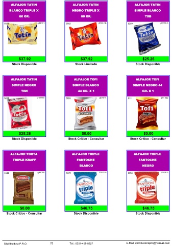 Distribuidora P.R.O. 75 Tel.: 0351-458-8927 E-Mail: distribuidorapro@hotmail.com