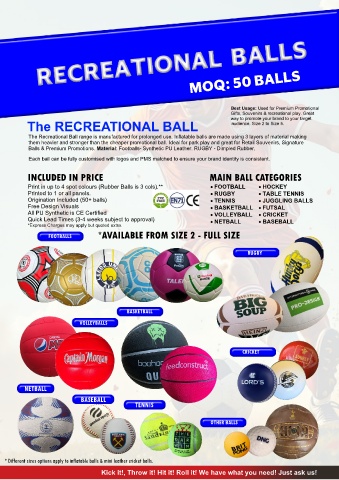 Print in up to 4 spot colours (Rubber Balls is 3 cols).** FOOTBALL HOCKEY