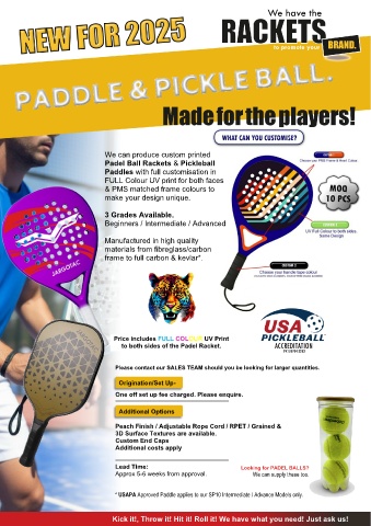 * USAPA Approved Paddle applies to our SP10 Intermediate / Advance Models only.