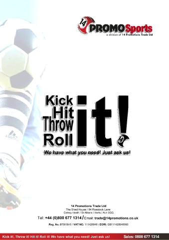 a division of 14 Promotions Trade Ltd & Equipment Kick it!, Throw it! Hit it! Roll it! We have what you need! Just ask us! Sales: 0800 677 1314