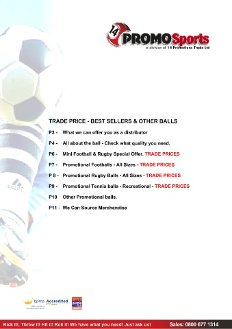 a division of 14 Promotions Trade Ltd Kick it!, Throw it! Hit it! Roll it! We have what you need! Just ask us! Sales: 0800 677 1314