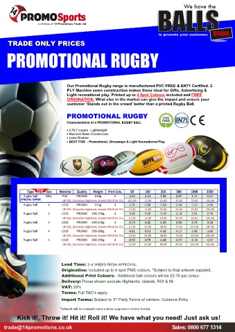 Our Promotional Rugby range is manufactured PVC FREE & EN71 Certified. 2