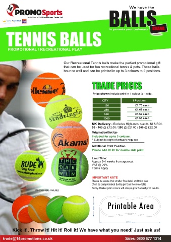 t trade@14promotions.co.uk Sales: 0800 677 1314